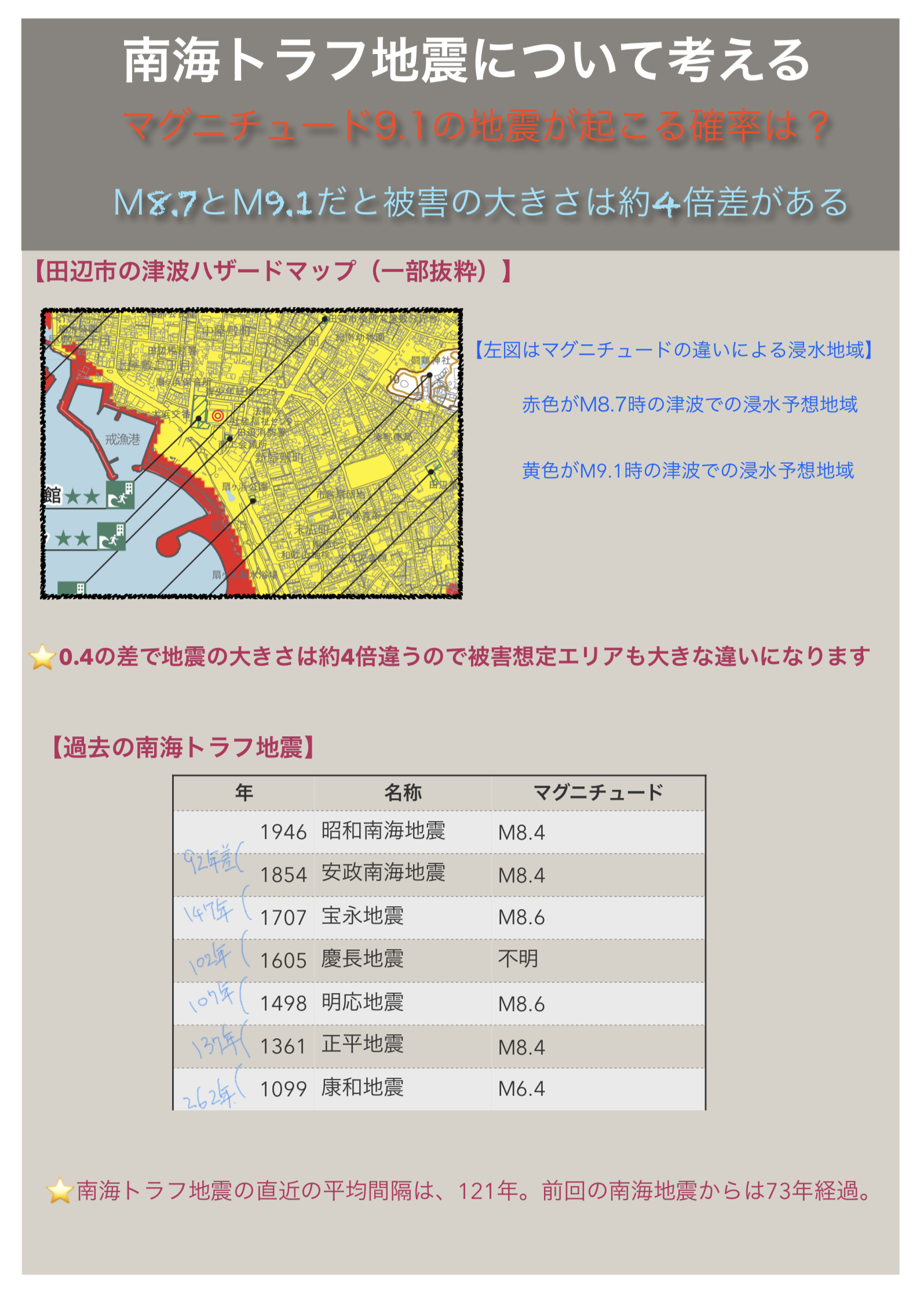 南海トラフ地震がマグニチュード9.1であることを考える