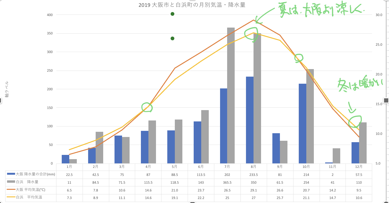 2017〜2019年、和歌山県白浜町(紀南地方)月別平均気温の推移